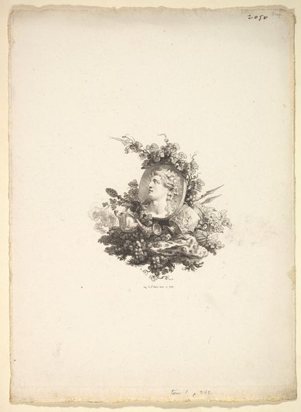 This print was made in Paris by Augustin de Saint-Aubin. The piece is an etching, a printmaking technique where lines are incised into a metal plate, which is then inked and pressed onto paper. The vignette shows a medal featuring Harpocrate, the Hellenistic god of silence, surrounded by lotus flowers. Look closely, and you’ll see how the etched lines create a delicate interplay of light and shadow, giving depth to the clouds and texture to the foliage. The fineness of the detail speaks to Saint-Aubin’s skill, but also the labour-intensive nature of etching. Each line had to be carefully drawn through a protective coating on the metal plate before being bitten by acid. Prints like these played a vital role in disseminating knowledge and taste in the 18th century. They were part of a larger system of production and consumption, where skilled artisans like Saint-Aubin contributed to a growing market for art and information. This piece reminds us that even seemingly simple images are the result of complex processes, situated within broader social and economic contexts.