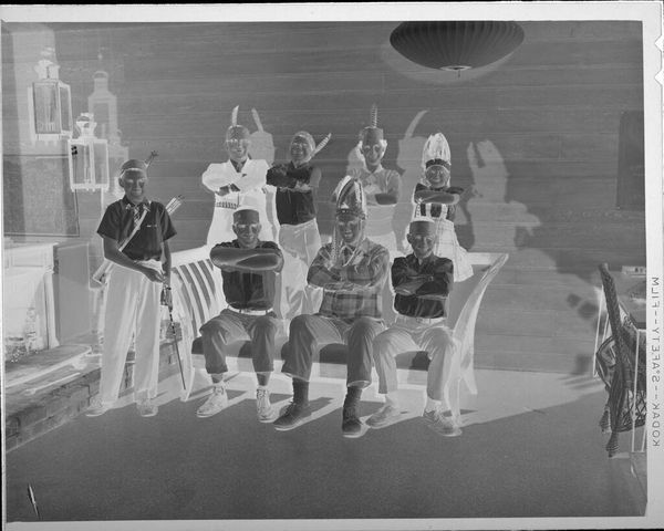 Editor: This photograph by Hamblin Studio shows men in uniform standing in front of an airplane, and the texture of the photo itself feels a bit grainy. What can you tell me about it? Curator: Considering this photograph, it's vital to consider the materials. The photographic paper itself, the chemical processes involved in its development, and the potential mass production all speak to a specific time and purpose. How might this mass production influence our understanding of military imagery? Editor: That's interesting; I hadn't thought about the production side of it. It definitely feels like it was made to be distributed widely. Thank you! Curator: Absolutely, and by focusing on the materials and means of production, we can really start to unpack the layers of meaning embedded within.