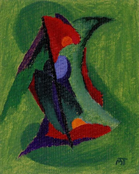 This is 'Composition', an undated painting by Janos Mattis-Teutsch. It's made with oil on cardboard, humble materials that speak to the artist's practical approach. Mattis-Teutsch wasn't interested in high-flown artistic gestures. Instead, he built up layers of color, one careful stroke at a time. Notice how the paint isn't blended smoothly, you can see each mark, a record of the artist’s process. The vivid reds, greens, and blues contrast with the deep black, creating a lively tension. Mattis-Teutsch was involved with avant-garde movements that sought to connect art with everyday life. His commitment to direct, hands-on methods reflects a desire to democratize art-making, rejecting the preciousness often associated with fine art. He invites us to appreciate not just the image, but also the labor and the materials that brought it into being. This approach blurs the lines between fine art and craft, inviting us to consider the value of both.