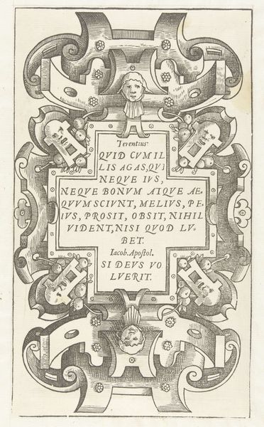 This is an engraving of a cartouche with a quote by Terentius, made by an anonymous artist. In the context of the Dutch Golden Age, the choice of a classical quote and the design of the cartouche suggest an era deeply invested in humanism and the revival of classical ideals. During this period, there was a renewed interest in classical literature and philosophy, which profoundly influenced art, literature, and intellectual life. The quote itself, which translates to "By Hercules, this is the truth: without Ceres and Bacchus, Venus freezes," speaks to the prevailing societal values around pleasure, sustenance, and truth. Considering the absence of the artist's identity, we might think about the role of anonymity in art production and how it affects our understanding and interpretation. Perhaps the intention was for the artwork to reflect universal truths rather than personal expression. The emotional dimension here lies in its reflection on societal values and the human condition.