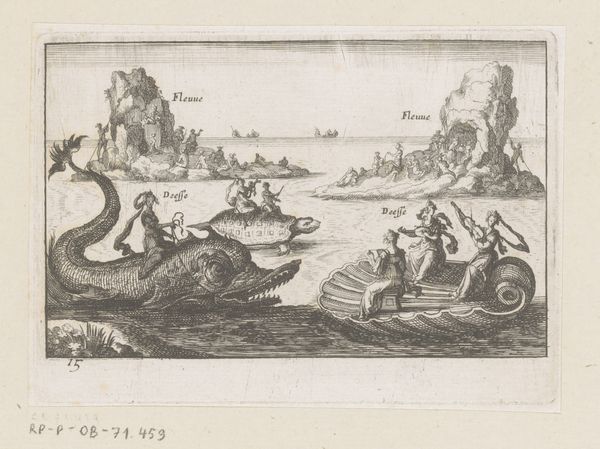 This is a 1616 engraving, titled "The Islands Solor, Ambon, Gunung Api and Banda Neira," by an anonymous Dutch artist. It was created during a time when the Dutch East India Company was expanding its reach in the spice trade. This print offers a glimpse into the colonial gaze, portraying these Indonesian islands as resources to be mapped and exploited. We see not just landscapes, but strategic locations marked with European ships and settlements. The presence of local figures seems to emphasize a dynamic of observation and control. Consider the emotional weight of such images: for Europeans, they represented opportunity and wealth, while for the indigenous populations, they signified the loss of autonomy and the erasure of their own cultural narratives. It reminds us of the complex and often painful intersection of cartography, commerce, and colonialism.
