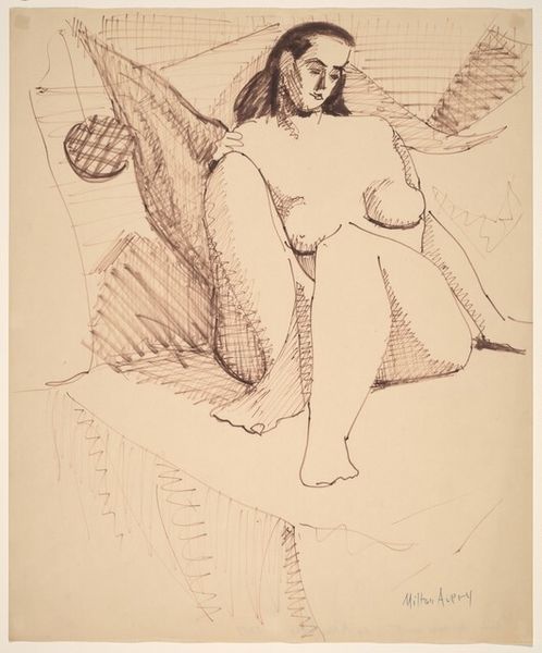 Charles Houghton Howard made this untitled drawing of two nude women with ink on paper, but there's no date on it. I like the way he's used the cross hatching technique to build up a sense of depth and volume. It’s almost like he's sculpting with lines, giving the figures a really solid, tangible presence. Look at the woman on the left. She's sitting with her legs crossed and it’s so interesting how Howard uses these tiny little marks to describe the curve of her belly and the folds of skin. You can really see the artist at work, making decisions, trying out different ways to capture the light and shadow on her body. It’s really this layering that makes the drawing feel so alive. I am reminded of the work of Marsden Hartley, with its emphasis on form and bold lines, but Howard has a tenderness, creating something deeply personal and intimate. Ultimately, it’s a piece that invites us to slow down, to look closely, and to appreciate the beauty and complexity of the human form.
