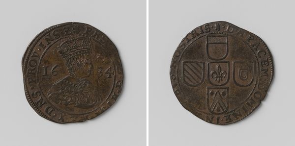 This small coin, of unknown date and maker, is made of silver. The material has been hammered and stamped to create the imagery on both sides. The designs celebrate ‘divine assistance to the rebels.’ Coins like this are primary evidence of early capitalism. Their value is intrinsic to the precious metal they contain, and they are made using sophisticated metallurgical techniques, showing evidence of the division of labor. The stamping process, while simple, is an early form of industrial production. As such, this coin’s imagery has social significance: on one side, the skyline of a fortified city is depicted, while the other shows heraldic shields. The coin thus represents an aspiration to sovereignty, a desire to enter into a new economic order. Its imagery, stamped in silver, demonstrates that a collective of people were intent on making their mark.