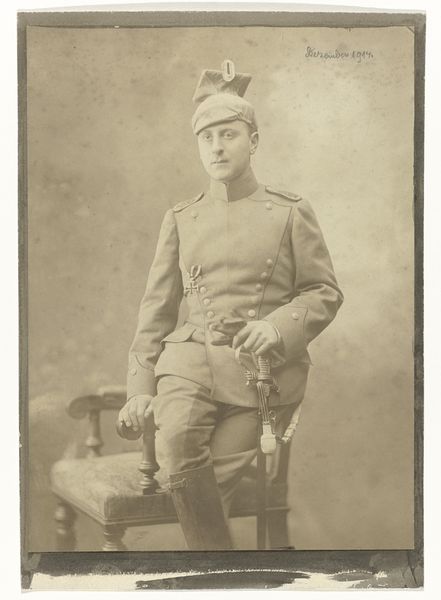 In December 1914, Hermann Brandseph created this photograph of Arthur Moos in his German army uniform, complete with a saber and the Iron Cross. Looking at this sepia toned image, I am struck by the way the light seems to sculpt the subject, almost like painting with light. The textures are fascinating – the crispness of the uniform contrasts with the soft, almost blurred background. The Iron Cross on his chest catches the light, a small but powerful focal point. I wonder about the physical act of creating this image. Was it a single, decisive moment, or a carefully orchestrated process? I imagine Brandseph, adjusting the light, arranging the pose, all to capture something essential about Arthur Moos. This photograph feels like a conversation across time. It reminds me a little of August Sander, who also sought to document the German people with a similar sense of directness and honesty. What do you think?