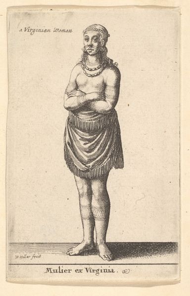Salvator Rosa made this print, one of a series titled "Varia Et Concinna Delineamenta," sometime in the mid-17th century. Rosa was a bit of a rebel, known for his wild landscapes and dramatic history paintings. Here, we see a female figure, draped but bare-breasted, standing in what looks like a desolate landscape. Rosa was fascinated by the idea of the "sublime" – that mix of awe and terror we feel when confronted with nature's power. But there’s also a tension here related to the representation of women. In Rosa's time, female nudes were often used to represent abstract concepts, like virtue or beauty, but also as objects of male desire. This figure seems caught between those two worlds. She’s vulnerable, but also powerful in her connection to the raw, untamed landscape. Rosa plays with these contradictions. He invites us to consider the complex ways women were viewed and portrayed in his era.