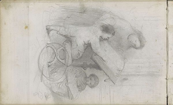 This is Bastiaan de Poorter's "Studieblad met meisjes," a pencil drawing now held at the Rijksmuseum. The paper is divided into two distinct panels, each filled with lightly sketched figures. The wispy lines create an airy, dreamlike atmosphere. The composition is fragmented. On the left, we discern a cluster of figures, while on the right, a solitary figure emerges from the hazy background. De Poorter's use of line and form destabilizes traditional portraiture. The sketches aren't fully realized, instead, they offer a glimpse into the artist’s process, a moment of becoming rather than a fixed state. The unfinished quality invites us to consider the relationship between intention and execution, representation and abstraction. It challenges our expectations of what constitutes a finished work of art. The drawing exists as an exploration of form, rather than a polished representation of reality.