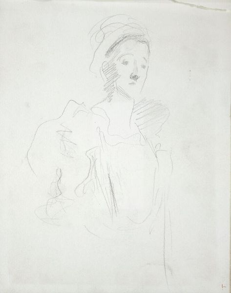 This is a sketch of Cassive by Henri de Toulouse-Lautrec. Her gaze is cast off to the side, away from us, suggesting a world of private thoughts, a gesture seen in countless portraits across time. The motif of the averted gaze carries with it a sense of melancholy, of introspection. Think of the Roman busts where the subject looks off to the side, or even earlier, in Egyptian tomb paintings where figures rarely meet our eyes directly. This symbolic choice speaks to a deeper cultural and psychological need to portray the subject as thoughtful. It suggests a rich inner life, removed from the immediate moment, a world of memories and reflections. Consider how the averted gaze appears in Renaissance portraits, often indicating modesty or piety. The eyes tell us that Cassive is not merely being looked at; she is also thinking, feeling, and existing beyond the confines of the sketch. This cyclical progression of symbols allows artists to convey a full image of a person across time.