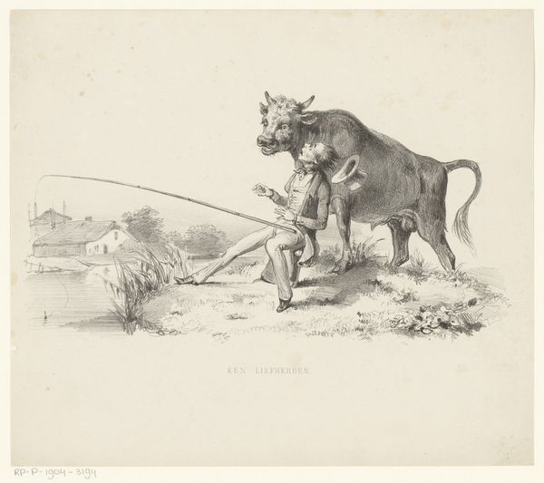 Editor: Here we have Oluf Bagge's etching, "To hunde," from 1831, at the SMK in Copenhagen. There's such a stark simplicity to it – two dogs on a kind of featureless plane. One's staring directly at us, while the other is looking upwards as if hearing a call, rendered with such delicate, thin lines. What do you make of this piece? Curator: Oh, I find myself wondering what captured their attention, and in turn, captures mine. Bagge presents two very distinct personalities; it’s like looking at a friendship where one's grounded and observant, the other caught up in whimsy. You know, it almost reminds me of when I’m birdwatching with my friend Agnes – I’m meticulously adjusting my binoculars and Agnes just *knows* where to look! But tell me, what does the landscape evoke for you? Does it suggest anything beyond just 'background'? Editor: That’s a lovely comparison! I suppose I had dismissed the background as minimal, but now I wonder if its lack of detail pushes us to focus even more intensely on the dogs themselves, their individual responses. I am seeing the light differently now. It's quite striking actually! Curator: Absolutely! It’s a subtle, yet potent touch. In the hands of a lesser artist this scene could become static, but here Bagge creates such gentle momentum. It's as if we’ve interrupted a fleeting moment and trapped it on the plate. We get to partake in something very unique and quiet. What a charming pair. Editor: I hadn't thought of it that way, almost as if we are eavesdropping. It does makes me appreciate it even more. I definitely have a new respect for how much can be said with so little!