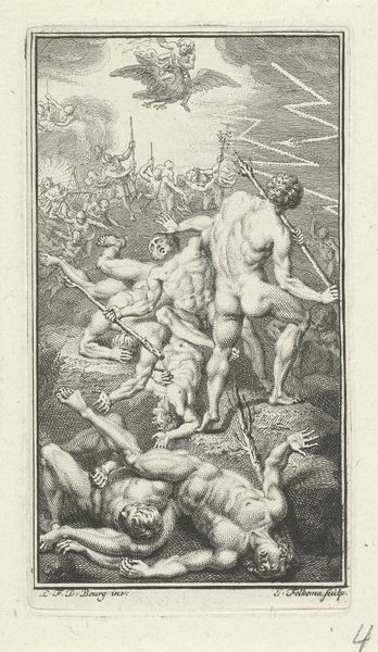 Curator: This densely detailed print, "Allegory of the Hunt" by Giorgio Ghisi, showcases a muscular figure carrying a female archer through a forest, surrounded by hounds. Editor: It has a rather imposing feel, doesn't it? The central figure, burdened yet powerful, strides forward, his expression unreadable. Curator: Ghisi, active in the 16th century, was known for his engravings, often reproducing works by other artists. Here, we can consider the power dynamics at play. Is this a triumphant display of masculine strength, or something more complex? Editor: Perhaps the female archer represents a different kind of power—skill, precision, strategic thinking, that directs the brute strength of the male figure. We must consider her agency, even in her seemingly passive role. Curator: Absolutely. And the hunt itself, historically, was a politically charged activity, tied to nobility, land ownership, and control. This print enters into those conversations. Editor: Looking at this image, I am left wondering how these historical dynamics echo in contemporary debates about gender roles and societal power structures.