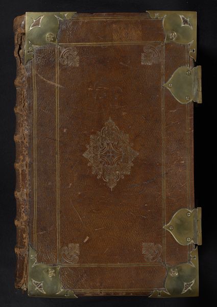 Editor: Here we have “Album van Jan Brandes, deel 2,” from around 1910, classified as a drawing, but appearing here as a beautiful bound book. The cover, a mottled brown, is framed by a gold decorative edge. What strikes me is the interplay of textures—the smooth leather versus the intricate gold work. How would you interpret the impact of that contrast, as well as the symmetry present? Curator: Note how the artist creates visual interest through the frame. Observe the rhythmic repetition of the foliate design—its undulating curves in gilt against the planar expanse of the book cover, creates an energetic visual field. This draws attention back to the central field. Consider too, how the book, as an object, engages with its material nature. Editor: I see what you mean about the eye being drawn back to the cover. Are there symbolic aspects that speak to function? Curator: Indeed. The interplay between the decorative frame and central panel performs an interplay between ornamentation and functionality. This serves as a material metaphor for its primary function as a container for textual and illustrative information, which must, itself, find an equipoise with legibility. Editor: So, you're suggesting the book cover isn't just pretty; its structure actively comments on what a book *does*. That's fascinating! Thank you. Curator: And thank you! Paying close attention to compositional dynamics unlocks fresh perspectives.