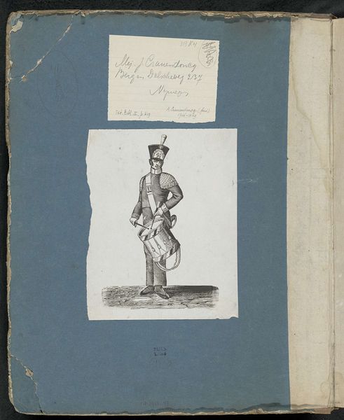 Editor: Here we have a photo reproduction of a print, depicting a portrait of Victor Emanuel II of Italy, sometime before 1885. It's presented like an open book. I find the subdued tones and formal pose convey a sense of old-world authority. What do you see in this piece? Curator: Beyond a simple portrait, this image is layered with symbolic weight. The King’s attire, for example, speaks volumes. What does the military garb evoke for you, placed within the context of Italian unification? Editor: It suggests power, strength, maybe the military achievements that led to a unified Italy? Curator: Precisely! The symbols embedded in his uniform, medals, and even his facial hair became part of the visual language constructing Italian national identity. And consider the open-book presentation; how does that contribute to the overall message? Editor: Hmm… it’s like presenting the king’s image as a historical document or an open narrative, something for the public to consume and learn from. Curator: Exactly! It places him within a specific, carefully crafted historical context. Note how this "photoreproductie" utilizes the then new medium, photography, to spread nationalistic ideals. Photography was quite groundbreaking and disseminated imagery very quickly to the population. So, what lasting impact might such a carefully constructed image have had? Editor: I hadn't thought about it that way, but now I see how this image operates on many levels to create a narrative around national identity, a very tangible interpretation of history! Curator: Indeed. By examining these symbols, we gain insights into how national identity was constructed and perpetuated through visual culture. Editor: I’ll definitely look at portraits with new eyes after this!
