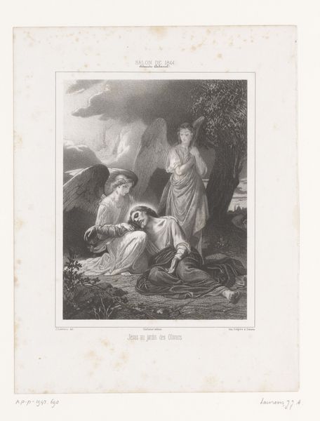 Curator: This engraving is Louis Philibert Debucourt's "L'Oiseau Privé" from 1795. It depicts a woman in a garden setting, quite neoclassical, if you ask me! Editor: It does feel restrained. Though that Cupid lurking in the bushes aiming his arrow does bring an unsettling tension to the scene. The bird cage feels... ominous. Curator: Yes, "Private Bird". Debucourt worked primarily as a printmaker, often creating genre scenes depicting Parisian life. His technical skills are exceptional and evident in the textures of the woman’s dress, which seem so soft you could touch it. He’s masterful in his rendering of fabric and light. Editor: Absolutely. And given the title and the cage in her hand, the social commentary strikes me first. This isn’t simply an image of leisure. This is a study of ownership. It’s a reflection of material desire and how it shapes relationships, human and otherwise. Think of the materials! Ink, paper, the metal of the cage—all commodities representative of wealth and power. Curator: It's interesting how the overgrown garden complicates that feeling, don’t you think? There's an untamed element that undermines the image of complete control. She offers the flower almost to the bird who could leave anytime, no? Editor: I agree—the suggestion of liberty and potential escape is critical. Debucourt is clever; it acknowledges the consumerist drive but hints at its inherent instability. What are we to make of Cupid? Is the bird the victim? Or her, the "owner"? Curator: What resonates with me most is the intimate, reflective mood. The piece prompts pondering what it means to want, what it costs, and, ultimately, the tender vulnerability it leaves in its wake. Editor: Exactly. A pretty picture about power—and its discontents. So well laid-out!