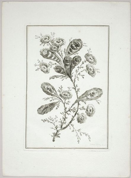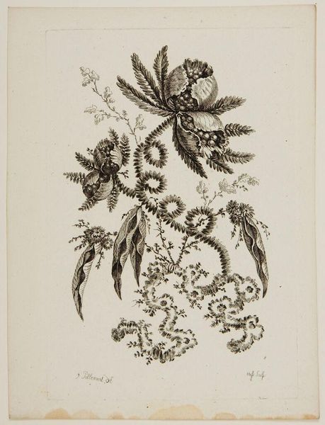 Johann Heinrich Hess created this print called 'Flowers with Berries' using etching techniques. Prints such as this one circulated widely in eighteenth-century Europe, a time when art and design served as powerful indicators of social status. Consider how wealthy families would use prints as inspiration for elaborate floral arrangements to adorn their homes. These displays served as a visual language of power, a symbolic representation of their affluence and global reach, as exotic flowers and fruits made their way into European households through colonial trade routes. This print develops traditional representations of still-life art by focusing on the decorative potential of plants. The print uses the natural world to explore themes of social identity and status. Though seemingly simple, artworks like this reveal a complex interplay of social, economic, and aesthetic values.