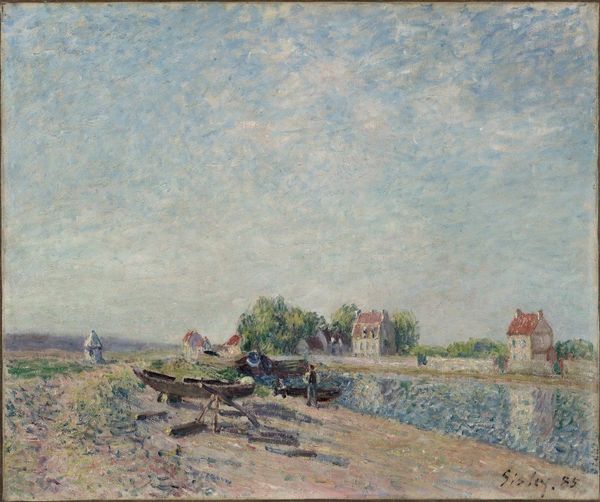 Alfred Sisley, with brushstrokes of light, captured "Le Barrage du canal du Loing à Saint-Mammès". The waterway, a powerful symbol of life's currents, dominates the scene. Since ancient times, waterways have symbolized the flow of time, change, and the subconscious. Consider the Greek god Oceanus, embodying the primal waters from which all life springs, or the rivers of the underworld, gateways to the afterlife. Sisley echoes this symbolism. Notice how the canal reflects the sky, blurring the boundary between earth and heaven, mirroring the cyclical nature of existence. Water motifs recur through history, each instance layered with cultural significance. Sisley's Impressionistic approach, evoking fleeting moments, adds to this sense of ephemerality. The scene creates a dream-like atmosphere, tapping into our collective memory. The waterway, in its continuous flow, reminds us that symbols are never static. They evolve, adapt, and resurface, carrying echoes of the past into the present.