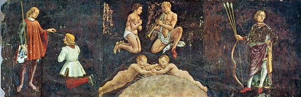 Carlo Carra made this painting, ‘Giudizio Universale’, with what looks like tempera paint, and the subdued palette creates a mood of serene contemplation. It’s as if Carra is inviting us to witness a scene frozen in time, where the act of judgement is more about quiet observation than dramatic pronouncement. The surface has a remarkable smoothness, almost like a fresco, which lends the image a timeless quality. Look closely, and you’ll notice the delicate brushwork, especially in the rendering of the figures’ skin tones. There’s a subtle layering of colours that gives the flesh a luminous quality. In the top right, the figure with his hand on his head is beautifully rendered, a simple gesture that carries so much weight and introspection. Carra’s work often blends classical and modern elements, an ongoing dialogue in art history. It’s like he’s saying, ‘let’s not forget where we came from, even as we push forward.’