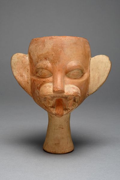 Editor: This striking mask, dated to between 1850 and 1900, crafted by an Inupiaq artist, employs wood and pigment in its construction. It's both captivating and unsettling with its simplistic yet direct gaze and peculiar set of teeth. What stands out to you when you examine it? Curator: What interests me are the tangible components and the act of production. Notice the selection and preparation of the wood—was it locally sourced? How does its grain influence the form? Pigment analysis could reveal the materials at hand and trade routes influencing their availability. This connects artistic expression to labor and broader consumption habits of the Inupiaq people. Editor: That’s an interesting point. It makes you think about where all the different pieces come from, literally. Does this mask relate to other indigenous art from the United States, in terms of its materiality? Curator: Absolutely. By examining other masks and objects created by the Inupiaq people, and those of other Indigenous groups of the United States, we may discover similarities and differences in material use influenced by environmental factors, cultural traditions, and the introduction of goods through trading networks with Europeans. Understanding the physical composition tells us more about how these people are affected. What function might the teeth have played within rituals or performances associated with the mask? Were these commercially produced goods, bartered for, or organically sourced locally? Editor: It definitely makes you wonder about its specific function. Learning more about the social conditions and trading possibilities surrounding it gives this mask so much greater context. Curator: Precisely. Focusing on the process allows for an understanding that expands beyond conventional aesthetics, challenging boundaries by integrating social and economic dimensions into artistic dialogue. Editor: Thanks! Thinking about the material components of artwork has completely transformed the way I see it. Curator: A materialist approach is an ongoing process! Keep questioning those means of production!
