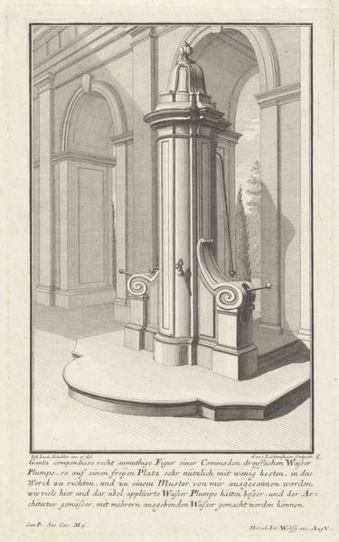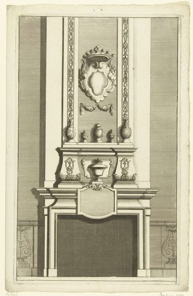 This is an engraving of a tile design featuring a vase in a niche. The vase, adorned with draped garlands, sits atop a fluted column. The column is also decorated with a meander pattern, a motif common in classical architecture. This meander, or Greek key, is an ancient symbol, appearing as early as the Neolithic period. We see it winding through Greek pottery, Roman mosaics, and Renaissance paintings. Its geometric form, suggesting an infinite path, embodies ideas of eternity and the unending cycle of life. Such symbols resonate deeply, tapping into the wellspring of collective memory. This vase is not merely a decorative object; it's a vessel carrying echoes of ancient rituals, philosophical musings, and perhaps, even a hint of the subconscious desire for order and permanence. The persistence of the meander pattern reminds us that cultural memory is not linear. These images resurface, evolve, and take on new meanings across time.