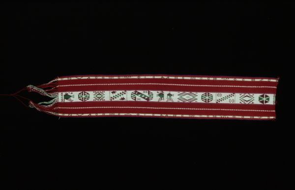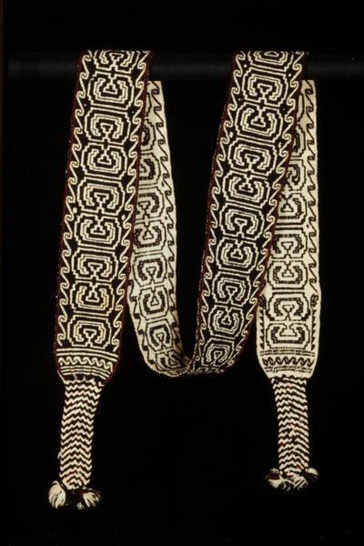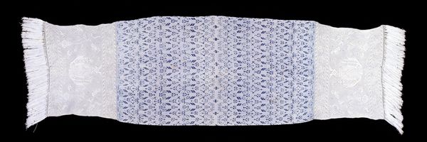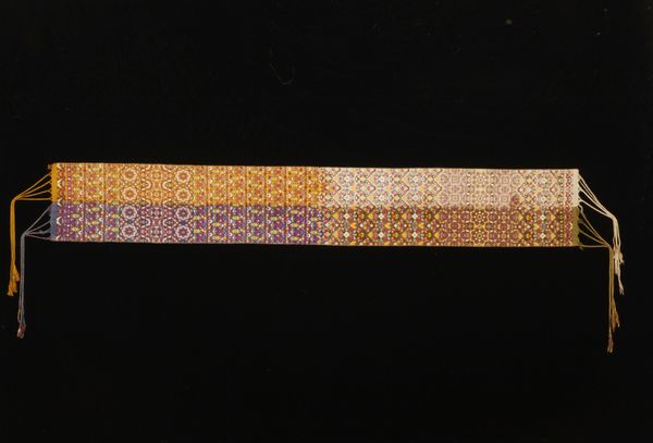 Curator: Here we have a woven silk panel, dating from around the 17th century, from an anonymous creator. Editor: It has this very soothing, almost meditative rhythm. The repeating leaf pattern, with those small diamonds in between... it’s simple, but so carefully crafted. Curator: Absolutely. The regularity speaks to its cultural context, potentially indicating use within a specific social structure, where displays of precise craftsmanship would have been highly valued, demonstrating skill and refinement, potentially even the status of its commissioner or maker. It has a strong symmetry in the natural, stylized motif. Editor: Right. Thinking about textiles in that era, it had to be labor intensive. I can imagine the artisan really having a vision to execute such even spacing and symmetry! Curator: Precisely. Also, we need to consider the access to materials. Silk implies trade routes, indicating specific economic and political networks that made this weaving possible. Someone or some community, had the wherewithal to dedicate a great amount of time, access specialized knowledge, and high end materials. The scale itself dictates how to view that context of intersectionality. Editor: And the leaves—it makes me wonder what significance the plant or tree held, symbolically. Is there an overt theme? Or just meant to look attractive? Or invoke health and prosperity, you know? I see leaves often on these older silk tapestries from around this period and, if you analyze these patterns deeply, can give you insights on the values and life considerations of the society from which the art came. Curator: That’s right. By the 17th century in many parts of the world, plant motifs had long carried significant cultural meanings. Whether those leaves represent strength, endurance, fertility, or are linked to religious or philosophical systems – these are things that historical and cultural context can tell us. This weaving can serve as a mirror reflecting not just aesthetics, but deeper societal values. Editor: Exactly! For me, that tension between its straightforward appeal and potential buried symbolic significance is intriguing. Makes it an intimate, contemplative artifact, rather than a cold and distant artwork. Curator: That balance between the object's immediate presence and the interwoven layers of its cultural context is the crux of how we should approach art from the past. Editor: Totally. Makes me appreciate not only the art, but the process of discovery around the context as well!