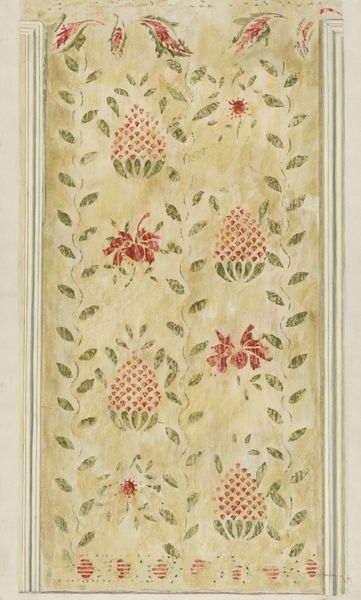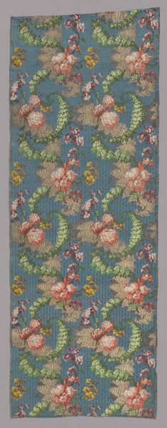 This lampas wall covering, created by Philippe de Lasalle, features recurring motifs of turtledoves, wreaths, and baskets overflowing with flowers. The turtledoves, emblems of fidelity and affection, are nestled within circular wreaths, symbols of eternity and unity. The intertwining of doves within wreaths harkens back to ancient Roman art, where similar motifs symbolized marital harmony and domestic bliss, often adorning tombs and household objects. This symbol is not static. The image of doves carries a resonance across cultures, a psychological echo of love, peace, and devotion. These floral arrangements, abundant and lively, convey a sense of luxury, fecundity, and the ephemeral beauty of nature. The way these elements are combined invites viewers to ponder themes of love, memory, and the transient nature of beauty. Observe how these symbols have evolved, resurfacing in tapestries through the ages. What echoes of collective memory do they stir within us?