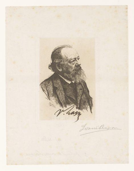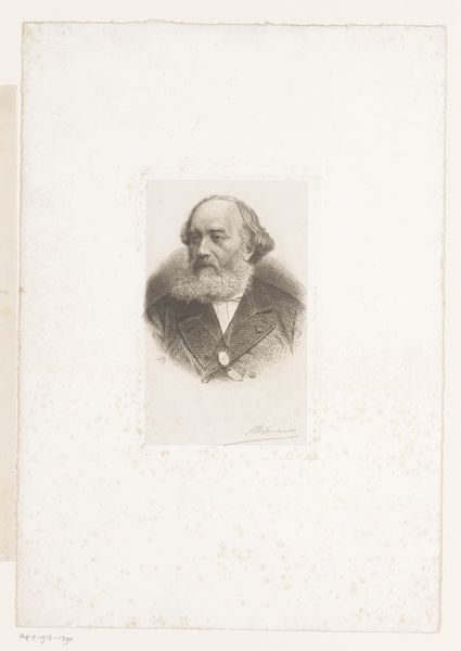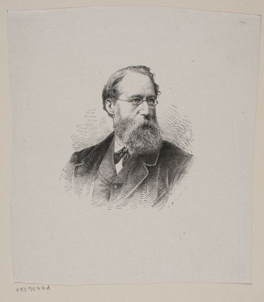 Editor: This is an intriguing pencil and charcoal drawing entitled "Portret van een onbekende man" (Portrait of an Unknown Man) by Frans Lauwers, dated between 1864 and 1911. The level of detail is astonishing, almost photographic, but the man’s eyes are soft, hinting at some interior world. What stands out to you when you look at it? Curator: The quiet dignity, perhaps? The kind of gentle strength you imagine emanating from someone who’s weathered a few storms. It whispers stories, doesn't it? The artist captures not just the man's likeness, but a sense of his essence, using a wonderful palette of grey. Notice how Lauwers uses the soft, blurred charcoal to create depth in the beard, contrasting that with the sharper, more defined lines of the eyeglasses. Does that suggest anything to you about his approach? Editor: It’s almost like he’s contrasting the tangible with the intangible – the beard, a physical characteristic, being more atmospheric, while the glasses, aiding his sight, are crisply defined. So you think Lauwers was trying to hint at more than just physical appearance? Curator: Precisely! It feels deeply personal, a reflective study, beyond a mere commission. The "unknown" aspect piques my curiosity even more. Every line, every shading seems a thoughtful consideration. It isn’t just a portrait; it's an invitation to ponder the weight of untold stories, don’t you think? A beautiful visual poem about anonymity, you could say! Editor: I do now. Thanks to you, what I saw initially as just a detailed drawing has opened up to this imagined narrative – the beauty of unknown stories is captivating. Curator: It is, isn't it? And that's often where the real art lies, in those spaces between the lines, in the invitation to weave our own tales into the canvas.