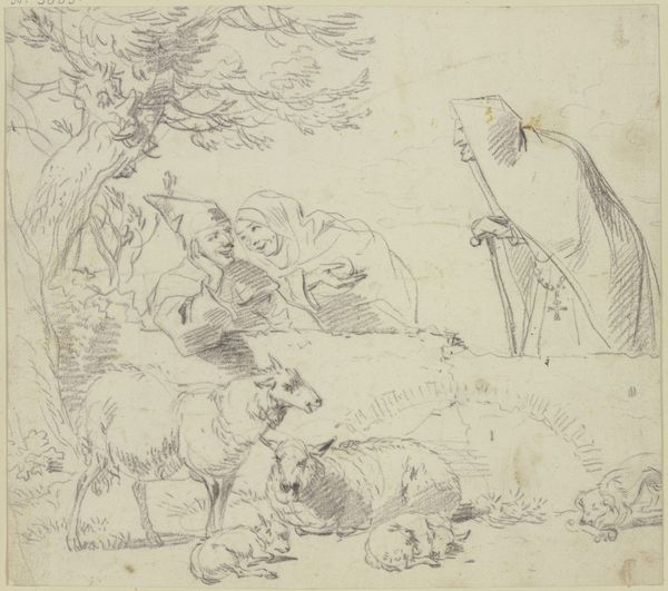 This is a design for a room decoration featuring birds, made by Abraham Meertens in the 18th century. The drawing presents a fascinating study in lines and forms, dominated by the graceful shapes of various birds. Meertens uses delicate lines to define the contours of the swans, herons, and smaller birds, creating a sense of depth through varied line weight and density. Notice how the composition invites the eye to wander, from the towering heron on the right to the cluster of ducklings at the base, each carefully positioned to create a balanced yet dynamic scene. The birds create a tableau vivant that captures a moment of natural beauty. The drawing offers an intriguing glimpse into the decorative aesthetics of the period and is a clear demonstration of Meertens' skill in capturing the essence of his subjects with minimal yet expressive lines. The structural arrangement destabilizes established meanings associated with formal garden designs, engaging with new ways of thinking about space.