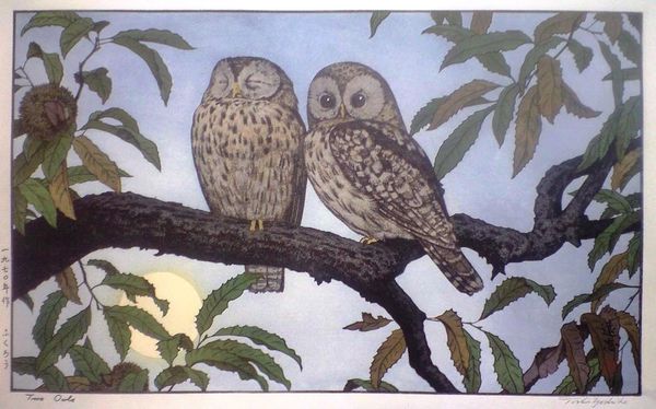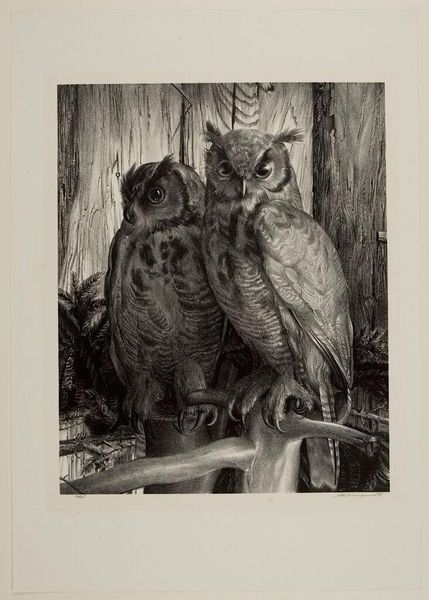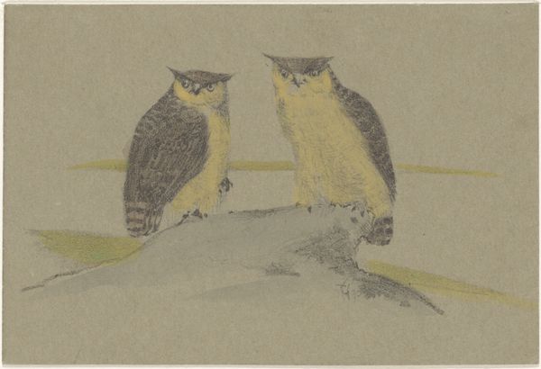 Curator: Here we have Archibald Thorburn’s watercolor, "Little Owl and Scops Owl." Editor: It's remarkable how he captures their textures with such a light medium. There's almost a feathery quality in the strokes. The composition directs your focus right into the faces. Curator: Indeed. Thorburn was a prominent figure in ornithological illustration, and his work often served as a tool for both scientific documentation and conservation efforts in a rapidly changing world. Editor: It’s interesting how, in this detailed study, each owl has a distinct posture—the Little Owl standing so tall and almost defiant compared to the tilted head of the Scops Owl. Curator: The stance really says so much. Consider, if you will, that Thorburn was creating during a period of increasing industrialization and urbanization, impacting natural habitats and raising questions about our relationship with nature. These images were powerful statements. They provided visual testimony of a disappearing world and prompted awareness about endangered species. Editor: Focusing solely on the artistry for a moment, note how Thorburn employs watercolor. There’s very little heavy pigment. Light plays across their forms and emphasizes their shape. Semiotically speaking, that light gives them almost a haloed significance. Curator: And the light isn’t accidental. It reflects not just visual accuracy, but a deeper awareness of the impact on wildlife. The very act of documenting these owls underscores the vulnerability of their existence in a changing ecosystem. Editor: I appreciate your reading of its contextual history, because it highlights the intersection between his role as artist, conservationist, and educator. When I look closely at how he used shading around the face of each bird, they seem not just observed, but deeply known by the artist. Curator: Understanding these nuances allows us to approach the artwork from different points of view and draw new understandings, allowing us to address the intersectionality within nature. Editor: A rewarding dialogue, emphasizing both our relationship to the natural world and its artful representation.