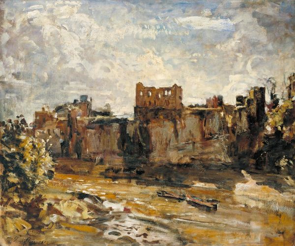 Camille Corot painted "The Papal Castle in Avignon" with oil on canvas; a seemingly straightforward landscape, yet steeped in complex histories. Corot was painting during a time of immense social change in France, with the rise of industrialization impacting traditional ways of life. His choice to depict the Papal Castle, once a powerful seat of religious authority, speaks to his interest in history and perhaps a longing for a bygone era. What does it mean to represent power? The castle, now bathed in soft light, suggests a reflection on the Catholic Church's shifting role, as its historical influence met the growing tide of secularism. The lone figure walking along the grounds adds to this feeling. "The Papal Castle in Avignon" invites us to consider how power and identity are constructed through space and time. The painting leaves us to ponder the weight of history and how it shapes our present.