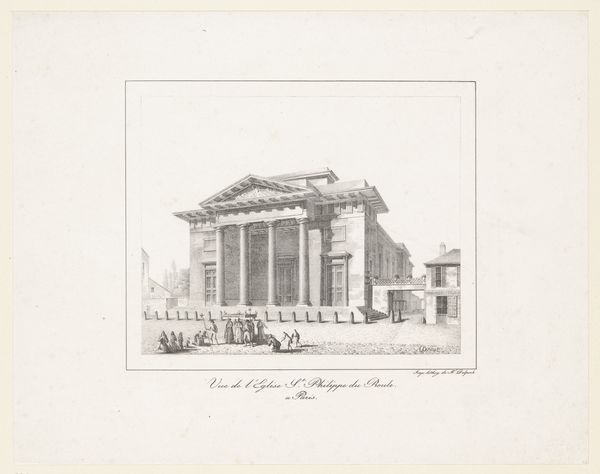 Pierre Jacques Goetghebuer created this print of the Gevel van de Aula Academica in Gent with etching. Goetghebuer lived through a tumultuous period in Belgian history, including the end of Austrian rule, the French period, and the establishment of the Kingdom of the Netherlands. The print reflects the cultural values of the early 19th century, a time when Neoclassical architecture was used to symbolize civic virtue and progress. Architectural depictions like this one served not only as records, but also as projections of societal aspirations. This is clear in the scale of the building relative to the people around it; it reinforces the institution's perceived authority. This piece also resonates with questions around who has access to education, and what role it plays in shaping social hierarchies and cultural identity. The meticulous detail in the print invites us to consider the stories and power structures embedded in the stones of the building.