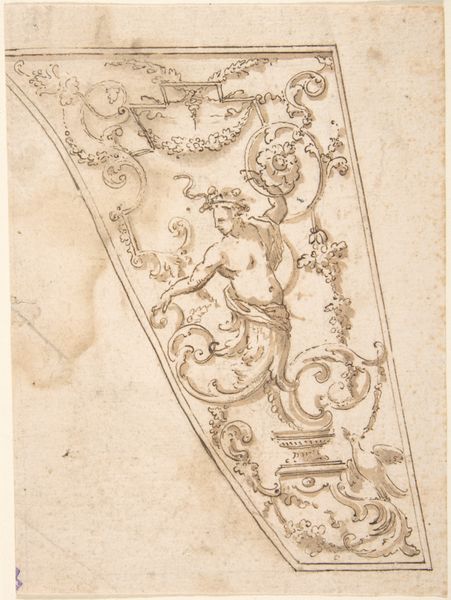 Editor: So, here we have "Waarheid," or "Truth," a pencil drawing from around 1600, created by Lambert Cornelisz, residing here at the Rijksmuseum. It feels incredibly intricate, almost like looking at the blueprint for some fantastic architectural detail. What stands out to you in this piece? Curator: The immediate impression is its incompleteness; it reveals the artist’s process. Note the sketch's composition dominated by classical motifs – cherubic faces, scrolling acanthus leaves. This imagery speaks to a cultural memory steeped in classical antiquity. These symbols of beauty and innocence are integrated into formal design, but what kind of truth do they construct, or perhaps conceal? Editor: That’s a great point about "conceal." It does make you wonder, doesn't it? The drawing is so decorative, but for what purpose? Was this a study for a larger, perhaps more propagandistic piece? Curator: Exactly! Think about the historical context: the Renaissance's rediscovery of classical ideals coupled with the rising power of the Dutch Republic. The "Truth" being pursued here isn't simply philosophical, it's deeply intertwined with civic identity, expressed through architectural and artistic symbols. Editor: I never would have considered that, but now I see it! The cherubs aren’t just cute; they are these almost political, historical icons. This drawing now gives off a whole new feeling because of this realization. Curator: Precisely. This incomplete sketch gestures to the larger cultural narratives about nationhood being visualized during the artist's time, where classical and contemporary aspirations converged, which we are allowed to study and enjoy today. Editor: I hadn't considered the power of cultural memory embedded within seemingly decorative elements, but that connection to the era’s ideals, visualized so rawly in this drawing, really brings it to life. Thanks!
