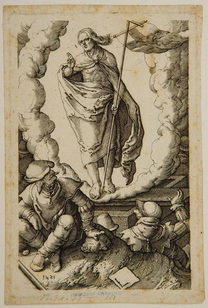 Jan Muller created this engraving, "The Resurrection," as part of "The Passion of Christ" series. Notice how the composition pulls your eye upwards. Christ emerges, framed by dynamic clouds, standing above startled figures below. Muller uses the technique of hatching to build tonal variation, giving form and volume. The density of lines creates darker areas, adding depth and drama to the scene. This technique serves more than just aesthetics; it signifies the moment of divine intervention breaking into earthly existence. The risen Christ is not simply depicted; he embodies the disruption of natural order. The act of engraving, with its linear precision, mirrors the theological concept of a divine plan meticulously executed. This piece challenges the viewer to consider how faith can destabilize our perceptions of reality, inviting continual interpretation.