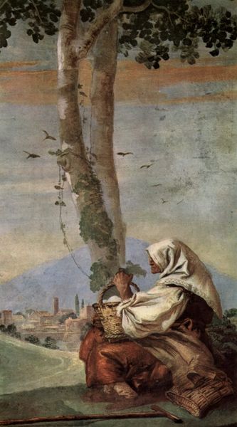 Piero della Francesca painted this fresco, Burial of the Holy Wood, in the Basilica of San Francesco in Arezzo. The initial impression is one of geometric simplicity: the stark diagonal of the wooden beam juxtaposed against the softer, organic forms of the landscape. Note how the pale blues and grays of the sky and mountains create a cool backdrop, allowing the warm, earthy tones of the wood and the figures to come forward. The figures themselves are rendered with a sculptural quality, their forms simplified into basic shapes. This echoes a broader concern in Renaissance art with harmonizing classical ideals with Christian subject matter. The wood, prominently displayed, is not just lumber; it carries symbolic weight, perhaps referencing the cross. Francesca's strategic use of perspective and color creates a sense of depth, yet the flatness of the fresco medium is ever-present. This tension between illusion and reality destabilizes our perception, inviting a deeper contemplation of the symbolic weight carried within the image. Each element contributes to a visual and philosophical discourse that continues to invite re-interpretation.