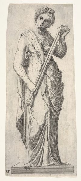 Editor: This is "Chinoiserie with a woman playing the mouth organ, from Suite de Figures Chinoises…", an engraving by Jean Pierre Louis Laurent Hoüel, dating from sometime between 1755 and 1776. The subject seems almost dreamlike, poised with her instrument. What strikes you about this print? Curator: What immediately grabs my attention is the suite's explicit purpose. The "Chinoiserie" reveals the production of fantasies—European fantasies constructed *around* China. What does the choice of engraving, a repeatable medium, suggest to you about the image's intended consumption and spread of ideas? Editor: I see what you mean. Engravings allowed for wide distribution and affordability, so these exoticized visions of China could reach a broader audience and perpetuate a certain narrative, perhaps. Curator: Precisely! Think about the materials: paper, ink, the engraver's tools. These are readily available European resources shaped into a product meant to satisfy a consumer desire for the exotic. How does the artist use these material means to present a concept of Chinese culture to a European viewership? Editor: The image itself reinforces a hierarchical viewpoint. It's not really *about* China, is it? It’s more about Europe's idea *of* China. Curator: Exactly. And consider who held access to these prints, and who would want them. Wealthier audiences sought these images and luxury goods precisely to assert social standing and an allegedly refined worldview, wouldn’t you agree? Editor: That's true. The image’s materiality makes visible how European desire shapes and distorts other cultures for its own consumption and social meaning. Curator: I find this approach invaluable in highlighting the labor and means required for such cultural fantasies to come into being and circulate within society. Editor: Thanks. Now I’m seeing how focusing on materials and production methods brings social context so vividly to life!