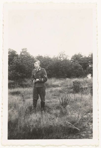 This photograph, titled 'Luitenant Wegner,' was made by an anonymous photographer, using photographic paper and chemical processing. Photography has always been tied to wider issues of labor and politics. The creation of photographic paper requires the extraction of raw materials, and the use of complex chemical processes, relying on industrial production. The development of photography coincided with the rise of mass production and consumption, impacting labor practices and social structures. The photograph is a small and intimate object, capturing a moment in time, yet it is also a product of complex social and economic forces. Consider the amount of work involved in the production process, from the manufacturing of the camera and film to the developing and printing of the image. Paying attention to its material existence challenges the traditional distinctions between fine art and craft, urging us to recognize its place within broader histories of creative practices and aesthetics.
