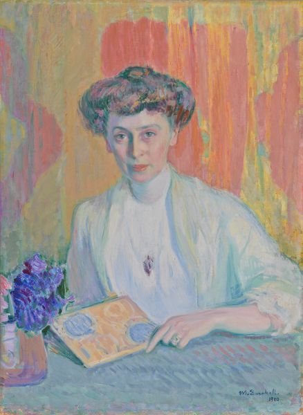 This is Pierre-Auguste Renoir's "Portrait of a Woman." Notice how Renoir employs a soft, diffused light, which gently models the woman's features and clothing. This emphasis on light and colour suggests a moment of quiet introspection. Renoir’s formal approach destabilizes traditional portraiture. He rejects precise lines in favour of blended tones and loose brushstrokes to create a sense of vibrancy and fleetingness. His technique reflects the broader Impressionist concern with capturing momentary sensory impressions. The composition, with its asymmetrical balance, focuses the viewer's attention on the woman's face, while the surrounding details remain secondary. Renoir's use of pastel invites interpretation through a semiotic system of signs, where colour and form operate as cultural codes that challenge fixed meanings. Renoir asks us to engage with new ways of thinking about perception and representation, moving beyond traditional academic conventions.