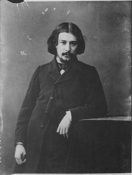 Curator: I'm immediately struck by the textures and layering apparent in this gelatin-silver print. There's the tweed of his suit, the rough surface of the ornate table... Editor: Indeed. Let's contextualize. This is Félix Nadar's portrait of Alphonse Daudet, created in 1891. It's fascinating when considering Daudet's legacy in late 19th-century French literature. The image provides an interesting point of intersection with issues of authorial identity and celebrity culture of the period. Curator: The silver gelatin process is also critical. Nadar wasn't just documenting Daudet; he was actively crafting an image, utilizing light, chemistry, and process to convey something specific. You can see where the light seems to illuminate him from within. Editor: Precisely, it connects with Romantic ideals regarding authorship and selfhood. It situates Daudet within a discourse on artistry as divine inspiration during a crucial period for the conception of the 'artist.' We are speaking about the cultural and political forces surrounding this portrayal. Think of the shifting gender dynamics and its implications for men in public life during the fin de siècle! Curator: I find myself fixated on Daudet's hands, almost caressing the edge of that bizarre little table with those little carved masks—the staging is important to how we are meant to perceive Daudet. How is Nadar suggesting an image about Daudet’s relation to classical ideals? Is it merely window dressing? Editor: That’s astute. Think of how the photograph flattens any labor connected with portraiture; here we only see Daudet, not Nadar's workers prepping materials, mixing chemicals, and developing. The finished image is marketed, bought, consumed – divorced from its mode of production. Curator: Thank you for sharing that context; the way you discuss these intersections has helped to shed new light on a relatively traditional portrait. Editor: It is essential that we delve beyond the mere image and discuss the structures and labor that went into the representation.