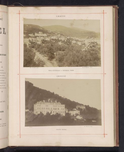 Curator: We're looking at an albumen print from before 1886 by Albert Courret, titled "View taken from the Californie." What are your initial thoughts? Editor: It's a cityscape of Cannes, very soft and hazy. It feels almost dreamlike, and definitely old-fashioned. What do you see in this piece? Curator: I see a document of power and privilege. Courret's choice of "La Californie" as the viewpoint isn't accidental. In the late 19th century, that area became a playground for European elites, building lavish villas, exploiting resources. This idyllic scene masks the socio-economic realities of the time. Do you see any evidence of that tension in the image itself? Editor: Hmm, I see the dense cluster of buildings. Maybe that implies a certain degree of concentrated development, but it's hard to tell from this distance. Is there anything in the photographic technique that tells that story, perhaps? Curator: Absolutely. The albumen print process, while beautiful, was costly and time-consuming, making photography itself an elite pursuit. And consider what's missing—where are the people? Where is the labor that sustained this growth? The silence speaks volumes. What does this reading make you think about our present moment and art? Editor: It makes me think about the importance of looking beyond the surface, of understanding the context in which art is created, to reveal hidden histories and inequalities. The technology and techniques used have intrinsic bias. Curator: Precisely! By acknowledging this context, we become more responsible viewers and creators. Editor: I'll never look at a pretty cityscape the same way again! Curator: That's the point! Let's keep digging!