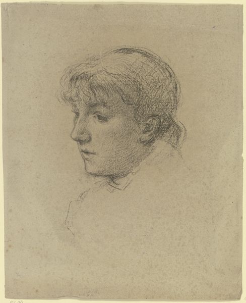 Curator: Before us, we have Henry Tonks's 1896 drawing, "A Young Woman in Profile," a delicate work rendered in pencil on what appears to be toned paper. Editor: There's a poignant melancholy about her downturned gaze. The light pencil work and soft shading contribute to a subdued, almost ethereal quality. Curator: It’s crucial to remember the context in which Tonks was operating; deeply ingrained patriarchal social structures governed representations of women, often framing them as passive figures of beauty, which intersects with broader issues of power, gender, and representation that warrant a closer inspection. Editor: Yet there's a certain purity to the image, almost a classical simplicity. Her profile echoes Renaissance portraiture, though stripped of its grandeur. It’s interesting how the artist captures this moment of contemplation, what do you think about the symbolical connection with earlier representations of feminine virtues? Curator: I can see that, but one might critique this apparent simplicity, observing how even in what might seem like a pure portrayal of feminine virtues, social ideals are often being reinforced, influencing what's considered graceful or aesthetically pleasing, and who gets to decide that. This woman, presented as a symbol, simultaneously embodies and perhaps even resists expectations placed upon women of that era. Editor: It evokes echoes of idealized beauty but also feels very grounded in reality through its simplicity. The symbolism isn’t overt, allowing for a more personal reading. There is an interesting use of tonal paper; the subtle variations create a background texture that almost adds depth to her emotion. It’s subtle. Curator: The technique also reflects a tension between objectification and potential subversion. The gaze that we cannot meet becomes both a barrier and a point of access, drawing the viewer into a discussion around agency and visibility within art history. I also wonder about who is behind this 'viewer,' which inevitably frames how women are ‘allowed’ to exist in visual cultural expression. Editor: It’s amazing how the absence of detail, especially in the background, intensifies the focus on her inner world, doesn't it? A universal appeal to an archetypal feminine form! Curator: I agree, in that moment this artwork sparks a necessary discourse around beauty standards, power dynamics, and the enduring legacies of such constructs. Editor: And it reveals so much about shifting representations of femininity through symbols. Curator: A lot more needs to be unearthed to reveal our perception and reception to representations such as this artwork!