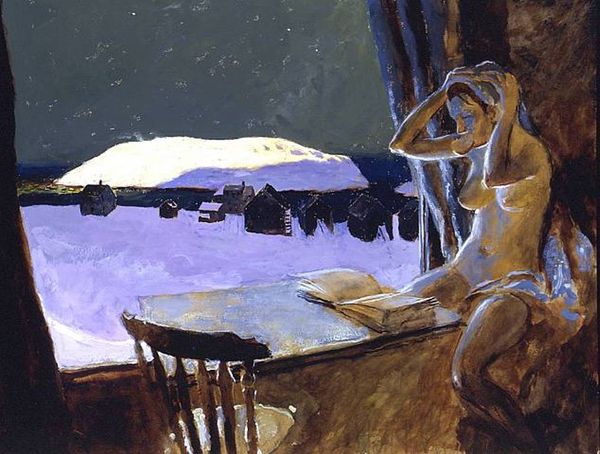 Konstantin Alexeevich Korovin captured a vivid night scene with oil on canvas in "Hunters Rest." The canvas is dominated by a composition of contrasting colors and light sources: the warm glow of the fire and tent set against a cool, green-tinged sky and dark foliage. The thick, loose brushstrokes give the scene an immediacy, a sense of being present in that moment. Korovin masterfully plays with contrasts. The geometric solidity of the tent provides a stable counterpoint to the flickering, amorphous fire. The blue smoke rises like a spectral presence, its form echoing the natural, dreamlike quality of the scene. This contrast destabilizes the traditional landscape by injecting a sense of subjective experience. Notice how the materiality of the paint itself contributes to the expressive quality of the work. The rough texture and visible brushstrokes remind us of the artist's hand and the constructed nature of the image. This approach underscores a broader shift in art where the act of painting becomes as important as the subject itself, inviting us to see beyond the surface and question the ways in which we perceive reality.