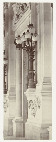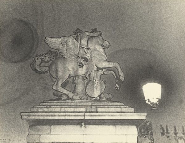 Frank Thiel made this photograph, sometime around the turn of the millennium in Berlin. It’s a study in contrasts, right? Stone versus sky, geometric versus fluid, captured in that quiet, grey light. Looking at this makes me think about how Thiel, like any artist, makes choices that frame the world in a particular way. The texture of the stone is really present, you can see every little nick and mark – time is revealed in those imperfections. Notice how the column, with its elaborate swirls, juts skyward to meet the figures perched above? It creates this tension that makes you want to keep looking and looking. Thiel's work reminds me a little of Bernd and Hilla Becher, those photographers who obsessively documented industrial structures. But Thiel brings a certain poetry to his images, a feeling that the city is alive, in flux, full of stories, and it's not just some dead object.