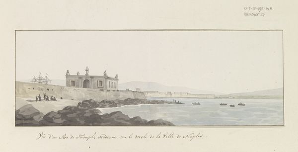 Louis Ducros made this watercolor of the castle of San Mauro la Bruca around the late 18th century. Ducros's technique is evident in the way he applies thin washes of color to build up the form of the castle and the surrounding landscape. The paper support shows through, adding to the delicate, airy quality of the scene. This approach was typical of landscape painting at the time, often made as souvenirs for wealthy tourists. The materials used here - paper, pigments, and brushes - are relatively straightforward, but the artist's skill lies in his ability to capture the subtle nuances of light and atmosphere. Notice how the soft tones of the castle contrast with the slightly darker hues of the sea and sky, creating a sense of depth and distance. These materials and the artist's technique come together to form an image that speaks to the traditions of landscape painting while offering a glimpse into the social and cultural context of the time. It reminds us that even seemingly simple materials can yield complex and meaningful results.