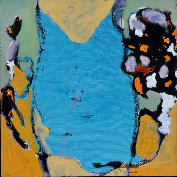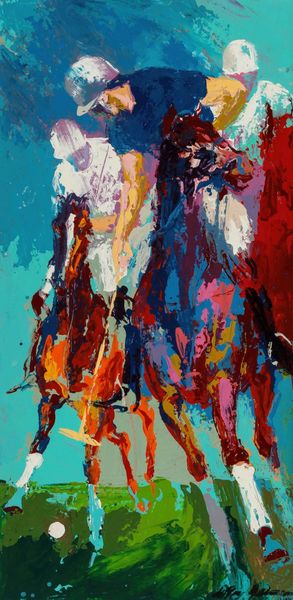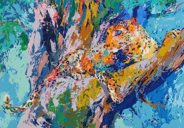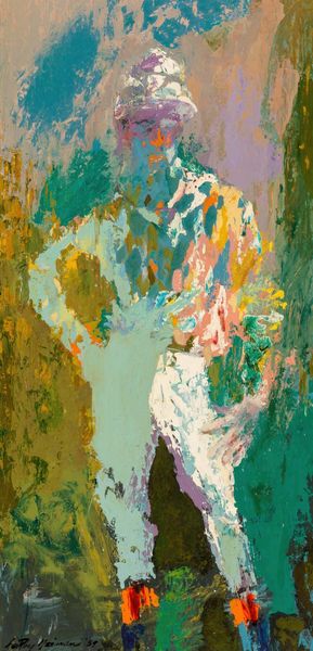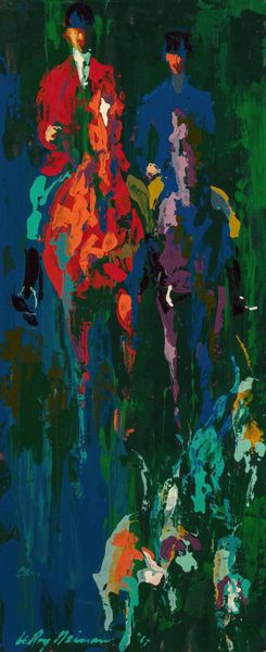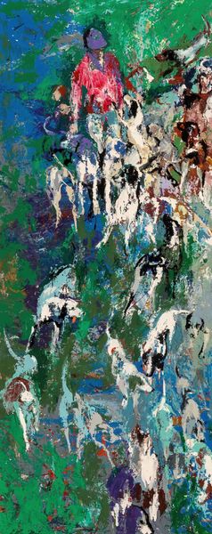 Curator: Immediately striking! Such dynamic energy conveyed through these gestural strokes. What's your first impression? Editor: My initial thought is one of urgency. It feels emblematic of the environmental crisis imperiling polar bears today. The swirling blues and whites evoke a precarious, melting landscape. Curator: That's a powerful reading. This is LeRoy Neiman's "Polar Bears," created in 1979. Neiman was known for his energetic, colorful depictions of sports and leisure. He worked primarily with acrylic on canvas. Editor: 1979 is interesting. Were there specific events or discourses at that moment influencing this theme? Or did he see something we didn’t. What are the underlying politics in presenting animal struggles. The expressive brushwork echoes Abstract Expressionism, yet the subject matter shifts our focus to the environment, right? Curator: It's fascinating how Neiman employs a loose, almost chaotic application of paint. It reminds us that art-making is itself a process of labor, applying paint on canvas to fabricate our realities. What materials, processes and contextual conditions are required? Do they change when we talk about abstract work? Editor: Exactly. Considering his oeuvre, how does the material reality and social contexts enable and constrain different communities' experiences and perceptions, and who holds power within those dynamics. Curator: Perhaps the raw, almost unfinished quality reflects his distinctive vision. The immediacy of acrylic allows the capturing of fleeting moments—or species in crisis. It shows its process, making its production visible through material means. Editor: Precisely! This prompts vital conversations regarding responsibility— both to the art and to ecological well-being. It raises profound questions about ethics, consumerism, and activism as they intersect with the visual arts. Who is doing what? To whom and why? Curator: I find this piece such an evocative study in motion, medium, and how even something as figurative can engage us with questions about the tools of the trade and the value we ascribe to these creations. Editor: Agreed. Viewing art through the lens of environmental and social justice certainly reframes how we interpret and interact with the message. The materiality enhances this dialogue, opening new pathways toward a critical cultural landscape.