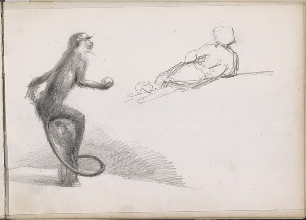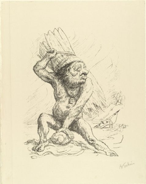 Curator: "The Monkey and the Dolphin" by Arthur Rackham, created around 1912. I’m struck by the delicacy of the line work, the intricate detailing rendered in ink on paper. Editor: It has a rather whimsical quality, don't you think? Slightly unsettling, yet also charming with this rather anthropomorphic quality, especially that little monkey! Curator: Indeed! Let's consider Rackham's illustration process. He likely employed a fine-tipped pen, building up layers of cross-hatching to achieve such detailed tonality. This was not merely a drawing, but a considered, manufactured illustration crafted for wide dissemination, possibly within a children's book. Editor: Absolutely, and situated in the socio-political contexts of the time, it presents a narrative open to interpretation. Is it about trust? Exploitation? The blurring lines between species and our responsibilities within that hierarchy? It invites critical engagement, asking us to confront our perceptions of difference and power dynamics in society. Curator: I see the deliberate craftsmanship too: the economical use of line, and his capacity to evoke volume and texture with just pen and ink. Notice the textures achieved – from the smooth skin of the dolphin to the fur of the monkey. What’s the material effect? This creates an imagined scene grounded by material skill. Editor: Consider, too, how gender roles are subtly embedded. The positioning, perhaps hinting at who controls movement, aligns with then-current patriarchal norms of who controls access. The passivity granted by our current standards and social climate—does this drawing perpetuate historical imbalances, suggesting dominion? It pushes conversations on historical positioning in our perception of animals, which are both subtle, and poignant, making it more resonant in today's critical climate. Curator: A final reflection on the artist's hand, Rackham. Each carefully placed stroke and etched shadow gives volume to each form. What is craft if not careful choice, to allow us to come to an understanding through tangible material application? Editor: Precisely, by using symbolism and allegory. And that gives it enduring relevance within current social justice dialogue and discourse, ensuring we ask deeper questions and expand critical awareness through art today.