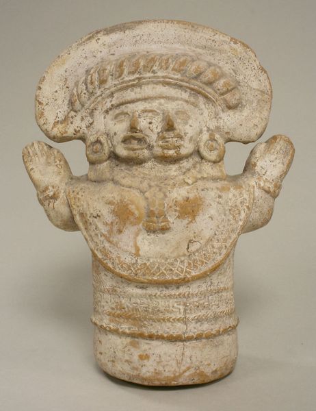 This ceramic funerary urn was created by the Zapotec people of Oaxaca, Mexico. It is a hollow vessel in the shape of a seated figure wearing elaborate regalia. The Zapotec civilization, which thrived from about 500 BCE to 1000 CE, had a highly stratified society. The elite class was believed to have a divine connection and were often depicted in elaborate clothing and jewelry. This figure embodies that status. The urn likely contained the ashes or remains of an important person. These objects offer an interesting look at the social and religious beliefs of the Zapotec. The urn is not merely a container, it is a representation of identity, status, and the cyclical nature of life and death. It’s a powerful reminder of the human desire to leave a mark on the world and to be remembered after we are gone.