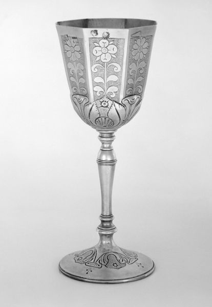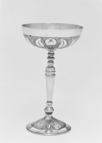 This standing cup, now at the Metropolitan Museum, was made by Niels Jonsen in the early 18th century. Crafted from silver, it showcases the silversmith’s skill in manipulating a precious material into an object of both beauty and utility. The cup's surface is adorned with delicate, chased ornamentation, likely achieved through meticulous hammering and engraving. Silver, with its inherent sheen and malleability, allows for intricate detailing, elevating the cup beyond mere functionality. The process involves a mastery of tools and techniques passed down through generations of silversmiths. The cup’s elegant form and refined decoration suggest it was made for a wealthy patron, reflecting the social hierarchies of the time, where luxury goods signified status and power. By appreciating the labor and skill invested in its creation, we recognize this cup not just as a decorative object but as a testament to the enduring connection between material, making, and social context.