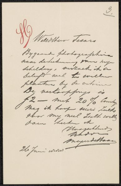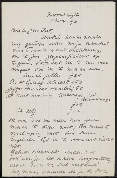 Here’s a letter to August Allebé, likely from around 1907, made with ink on paper. Look at how the lines of the writing dance and weave across the page, light in some areas, darker in others. It's like a little performance, a dance of words. I’m really drawn to the way the ink pools and bleeds in certain areas, especially in the salutation, ‘Geachte Heer Allebé’. It gives the writing a certain weight, a physicality that makes it feel almost sculptural. You can almost feel the pressure of the pen on the page, the artist's hand moving across the surface. It reminds me that art, like writing, is an embodied act, a way of making thoughts and feelings visible in the world. Thinking about other artists, I see echoes of Cy Twombly’s scribbled lines, or even the raw, expressive energy of someone like Jean-Michel Basquiat. Art is an ongoing conversation, an exchange of ideas and influences across time, and this letter is just one small, but beautiful, contribution to that conversation.