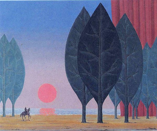 René Magritte made "Plain of Air" with oil on canvas, using traditional art materials to create a disquieting effect. The smooth surface and muted palette give the scene a dreamlike quality. The artist's meticulous technique gives the tree-leaf a weighty, almost industrial presence. But the image's true power lies in its unsettling contrast between the natural and the artificial. Magritte applied paint to create a hyperreal, imagined version of reality that looks very laborious. This challenges our understanding of how things are produced and consumed. What appears natural is actually painstakingly crafted. Magritte makes us question our own assumptions about art and reality, blurring the lines between what is real and what is not. This calls for us to reconsider the value we place on the materials and processes that shape our world.
