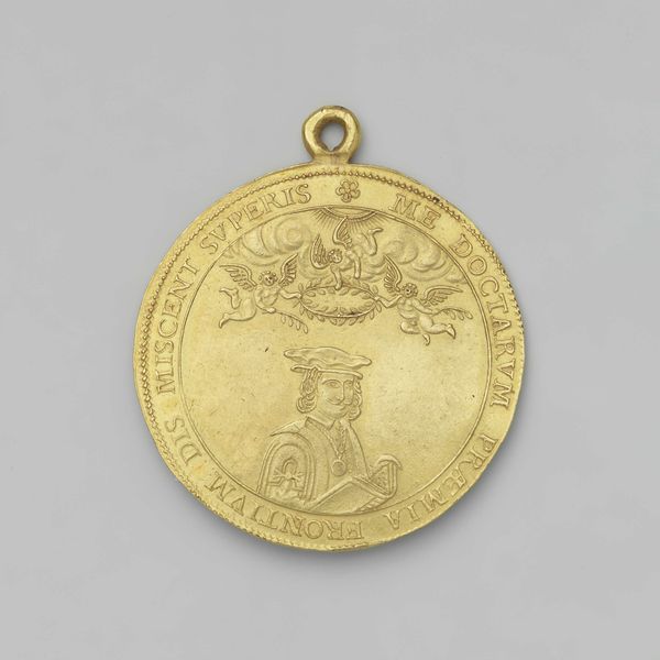Curator: This is an interesting little piece: the "Erepenning van de Nederlandsche Vereeniging van Huisvrouwen," or Honor Medal of the Dutch Housewives Association, dating from between 1925 and 1940. Gerritsen en Van Kempen were the artists responsible for its creation. Editor: It looks like a rather quaint token. It seems…almost medieval. It makes me wonder about what values it was intended to promote through decorative art? Curator: Well, considering the historical context, this medal undoubtedly reinforced the conventional role of women during that era. Medals like this, especially issued by a housewives' association, aimed to celebrate and reward domesticity and service to the family. Editor: It makes me curious, this tree on the medal - is that some sort of life tree or symbolic expression of productivity or family abundance? Curator: Absolutely, there's likely a purposeful message behind it. If we were to look closer into its design, the symbolic representation with a fruiting tree represents the bounty and prosperity of the household, a direct reflection of a housewife's "success." The metal itself also conveys messages of solidity and durability, traits then strongly associated with women's roles in maintaining domestic stability. Editor: Looking at it now, one can wonder what “devotion”, or "toewijding" was expected of Dutch women? Or what does it suggest for the relationship of housewives with the Dutch state and its society during this period? Curator: Certainly. This kind of award subtly suggests ways of performing "ideal" Dutch womanhood. It’s crucial for us to decode such imagery. It gives light to the unspoken socio-political agendas from that time. Editor: Indeed. Examining even the smallest details like this medal unveils some very potent social values that are crucial in shaping perspectives around gender and class. Thanks for bringing these elements of thought to light! Curator: You're welcome. It is a small object, but, as is the case with much of art, it can lead to a very complex set of issues.