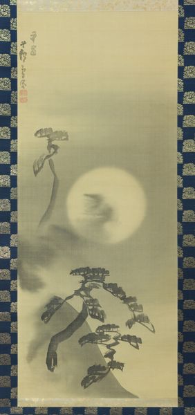 Watanabe Kazan created this woodblock print, "A Gold Coin," sometime in the early 19th century. The gold coin dominates the image, covered in striking black Japanese characters, set against a backdrop of stylized floral patterns. The coin itself, beyond its monetary value, serves as a potent symbol. Gold has long been associated with prosperity and power. Think back to the ancient world: gold artifacts buried with rulers, reflecting a desire to carry earthly status into the afterlife. Similarly, the floral motifs in the background are no mere decoration. Blossoms, particularly in Japanese art, often represent the ephemeral nature of life and beauty. Consider the yin-yang symbol carefully placed near the coin, which points to a deeper philosophical balance. Could this arrangement reflect the complex interplay of material wealth, transient beauty, and the search for balance that resonates through centuries? It appears like a dream image—a powerful engagement between the viewer and the subconscious. The visual weight carried within these symbols speaks to enduring human concerns across cultures and time.
