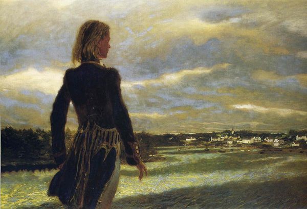 Pierre Puvis de Chavannes painted 'Woman by the Sea' in 1887. It shows a woman walking along the coast. The painting embodies the late 19th-century French artistic style, which favored idealized and timeless themes over the gritty realism of the time. The woman's classical garb and serene demeanor create a sense of detachment from contemporary social issues. We can appreciate how it draws upon classical imagery to elevate the female figure, potentially as a symbol of virtue or contemplation. France at the time was undergoing significant social changes with the rise of industrialization. In this context, the painting may be read as an idealized retreat from the complexities of modern life. To understand it better, one might explore the artist’s engagement with academic traditions. Ultimately, the meaning of 'Woman by the Sea' is rooted in its historical moment, highlighting the artist's dialogue with prevailing cultural values and artistic conventions.