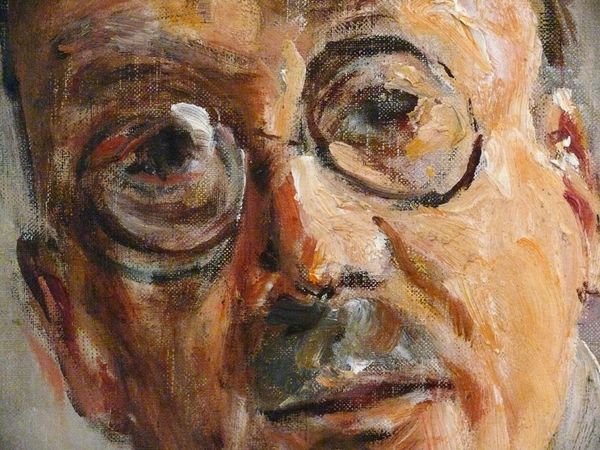 Curator: Here we have Lucian Freud’s “Robert Fellowes,” painted in 1999. Freud, known for his unflinching realism, particularly in his portraits, continues that trajectory here. The painting is currently held in a Private Collection. Editor: My first thought? Intensity. Look at that gaze. The impasto gives such texture, like we can almost feel the weight and age etched on his face. It's far from flattering but gripping in its raw honesty. Curator: Freud certainly wasn't about idealization. Robert Fellowes, the Queen's former Private Secretary, is presented with an almost brutal honesty, challenging the conventions of traditional portraiture that usually seeks to aggrandize its subject, especially given the sitter's societal status. The historical weight of the monarchy, its visual representation throughout the centuries, Freud completely ignores here. Editor: Right, instead of polished courtly imagery, we see this incredibly worked surface, layers and layers of oil paint. Think about the labour involved, the time spent applying these meticulous dabs of paint. And for what? To show this man's vulnerability? It's a fascinating social commentary achieved through the physical act of painting. The flesh tones are almost sickly, hinting at the pressures he faced in service. Curator: Exactly. Consider the role of portraiture in solidifying power. Royal portraits throughout history presented idealized versions of the monarch to project strength and stability. By presenting Fellowes with such stark realism, Freud challenges that very tradition, unveiling the individual behind the public role. Editor: And the visible brushstrokes! They are part of the statement. He makes no attempt to conceal the hand of the artist, highlighting the process of creation, almost as if suggesting that our perceptions are never fully objective, always mediated by material means, even if we are speaking about the upper crust of society. Curator: I agree. The visible texture brings a corporeal, almost tactile quality. In the socio-political context, it's a very powerful visual statement on authority, aging, and the pressures of power, as well as an interesting play on art as labour. Editor: It really makes you think about the politics of art making and what the production process reveals about society itself. The visible process humanizes the subject. Curator: Definitely food for thought, as Freud’s approach to portraiture raises pertinent questions about social conventions and the nature of representation. Editor: Indeed. This painting has reminded me that portraits can challenge norms far beyond merely visual representation and technical ability.